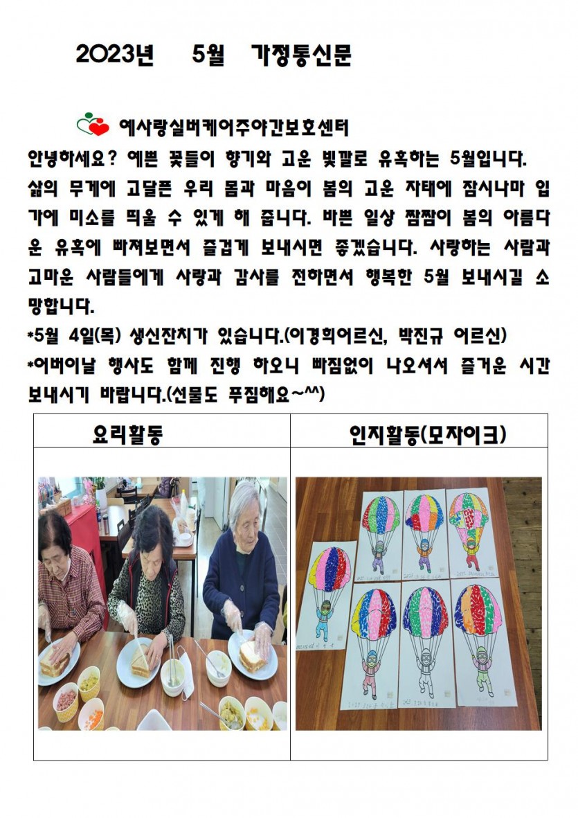 예사랑 실버케어 주야간 보호센터 5월 가정통신문입니다~:D