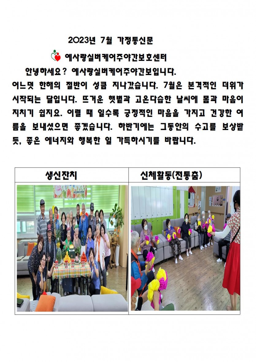작성자예사랑실버케어 댓글 0건 조회 1,265회 작성일 23-07-26 16:52