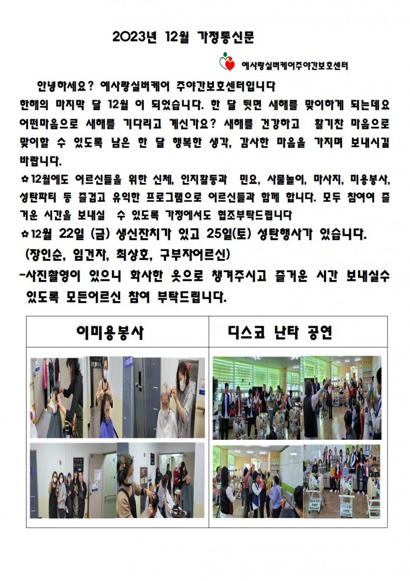 2023년 12월 가정통신문