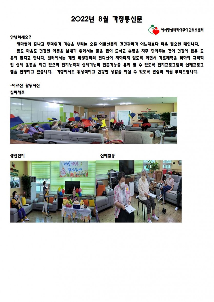 예사랑 실버케어 주야간 보호센터 8월 가정통신문