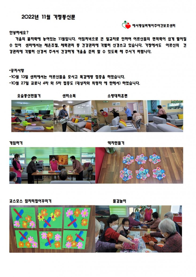 예사랑 실버케어 주야간 보호센터 11월 가정통신문