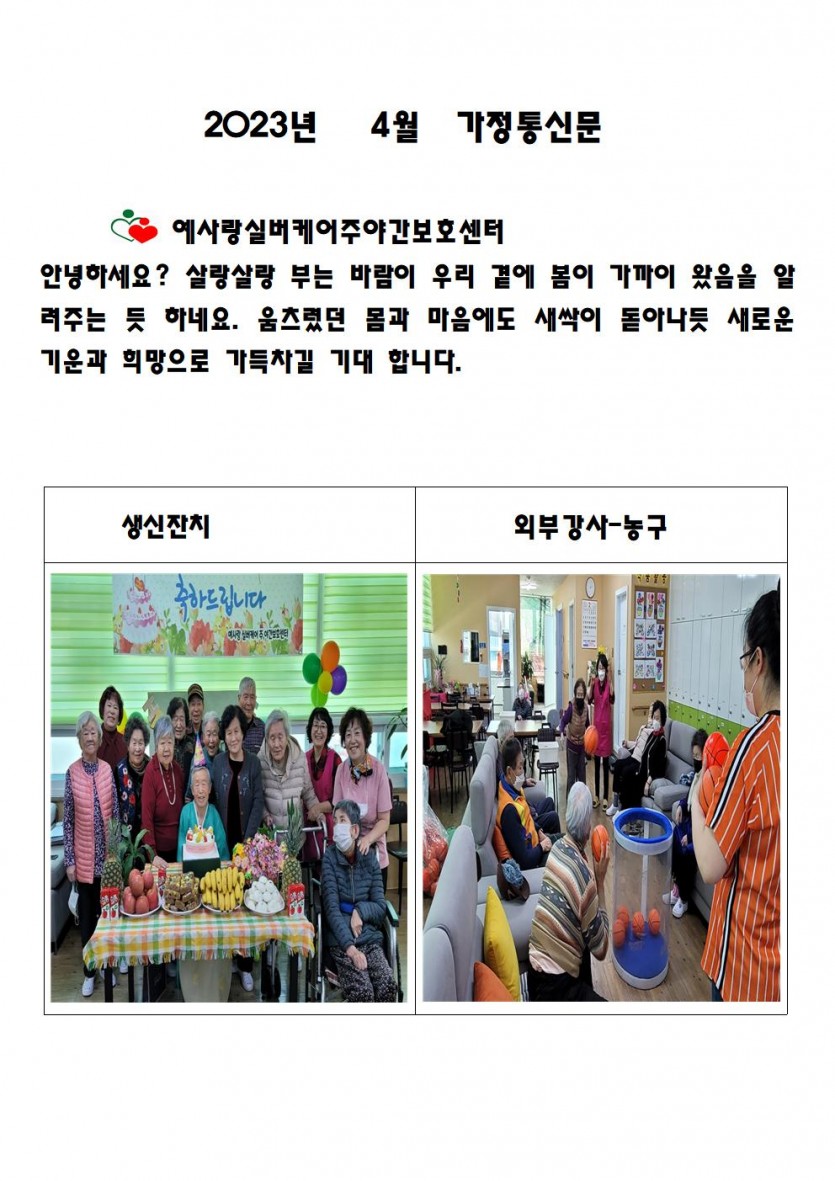 예사랑 실버케어 주야간 보호센터 4월 가정통신문입니다~:D